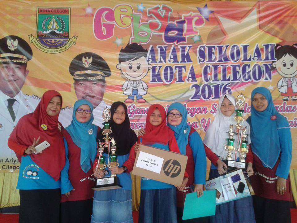 Selasa, 12 April 2016, Dinas Kesehatan Kota Cilegon menggelar kegiatan gebyar anak sekolah di Rumah Dinas Walikota Cilegon. Tujuan kegiatan tersebut adalah untuk mempersiapkan generasi Cilegon yang sehat dan cerdas. Acara yang dibuka oleh Wakil Walikota Cilegon Edi Ariadi ini dilaksanakan sebagai bentuk program Walikota Cilegon dalam Cilegon sehat dan cerdas. Alhamdulillah.... SDIT Raudhatul Jannah mewakili kecamatan Cibeber berhasil memperoleh juara 1 pada lomba membuat poster(ananda Raihana kelas 5C) & juara 2 membuat artikel (ananda Ghina kelas 5E). Semoga prestasi ini memberikan inspirasi dan motivasi bagi para siswa lainnya untuk senantiasa berprestasi.