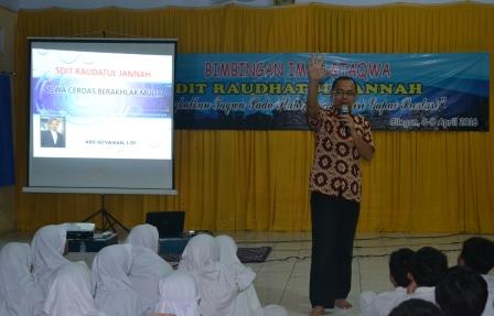 Tanggal 8 - 9 April 2016, SDIT Rudhatul Jannah mengadakan malam Bimbingan Iman dan Taqwa bagi siswa kelas 5 dan 6. Bertempat di sekolah, acara dimulai pk. 14.00 dengan pembukaan dan pembacaan qalam Ilahi. Acara secara resmi dibuka oleh kepala Sekolah bapak Pamuji, S.Pd.